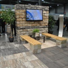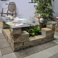 На фотографіях представлені варіанти застосування колотих блоків. Вироби можна використовувати в якості відкритої тераси або декоративного оформлення стін.