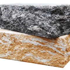 Важлива перевага матеріалу полягає в наскрізному фарбуванні блоків. Відламки й подряпини не псують поверхню, протягом десятиліть вона зберігає естетичний вигляд. Колоті блоки виробляються в різних розмірах і широкій палітрі кольорів. Використання колотих блоків дозволяє значно знизити витрати на укладання.