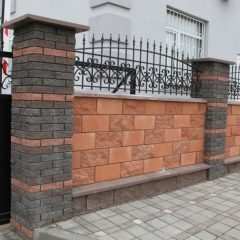 Якщо блоки зводяться як монолітний паркан, то його можна підняти на бажану висоту без стиків і зазорів. Вироби «нанизуються» на металевий опорний стовп, вмурований в фундамент.