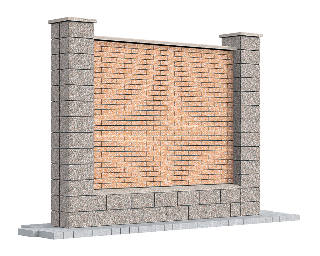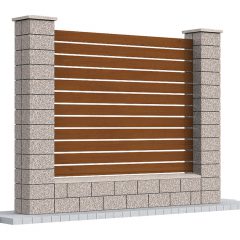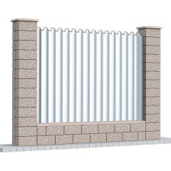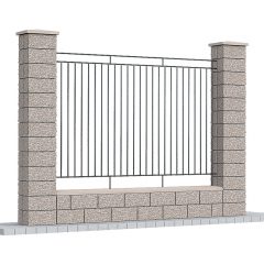 Збірні огорожі складаються з двох елементів: блоку пустотного і кришки двосхилої. Така конструкція нагадує цегляну кладку, її можна споруджувати різної висоти, доповнювати полотнами з напівпрозорого пластика, металопрофілем, деревом або кованими ґратами.